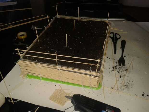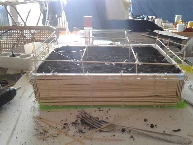 Con el resto de los palillos de madera hacer una valla para dividir el espacio...