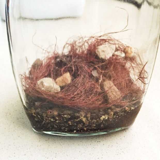 • Coloque la corteza o piedras en la parte inferior de la botella.