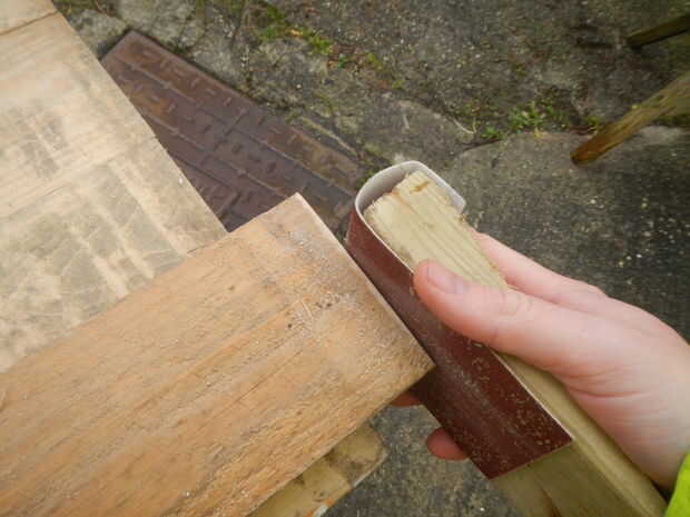 Unas maderas de palet pueden ser un poco áspera pero encontré un par de tablones que fueron desde una plataforma más que eran convenientes y con un poco de lijado parecerá agradable.