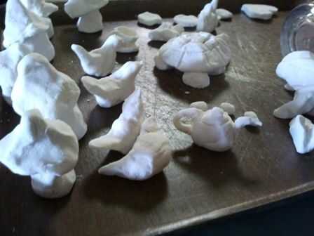 Fui de compras para miniaturas y estaba que yo sorprendido de lo caro! Si no eres "astuto" usted puede comprar todo lo que necesita en su tienda de artesanía local... acaba de tomar una billetera gorda. Sabía que podía hacer todas las setas, los juegos de té, una rana y bueno nada como la arcilla. He buscado y encontré una receta para una arcilla de modelado que utiliza bicarbonato de sodio, almidón de maíz y agua. Su muy simple:
