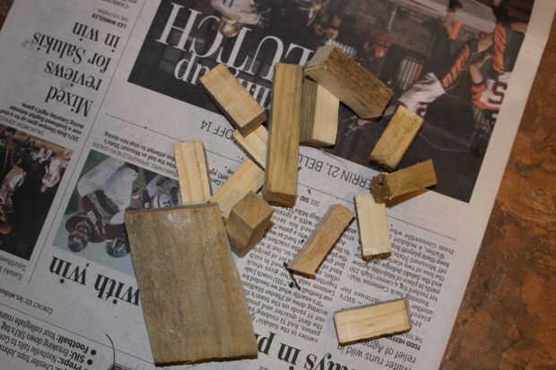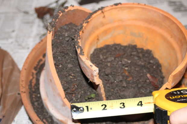 Medir el espacio para que usted puede conseguir algunas qué medida exacta de sus escaleras. (nota de seguridad: tenga cuidado si utiliza una sierra de calar en pedazos de desecho de la madera. La sierra podrá recostarse sobre estos trozos diminutos y destilan estragos en los dedos.) Después de cortar las piezas de madera, empujar en el suelo. Deben cuña muy bien entre las macetas de terracota y permanecer en el lugar. Poner una capa de la mezcla de suelo (opcional) sobre las escaleras. Agregué una pequeña olla de barro para el proyecto y llena la maceta con el suelo.