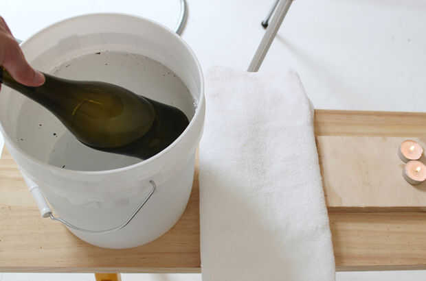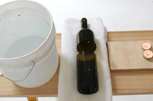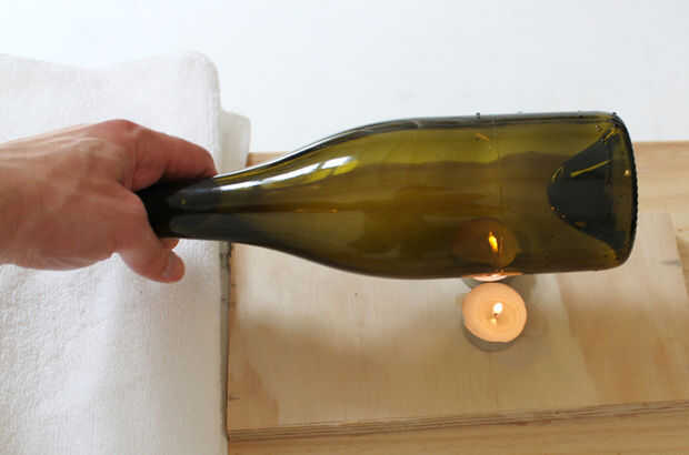 Este era el método más lento y menos efectivo que probé. Constantemente girando la botella sobre la vela era tediosa. Un método de clavada en el agua fría debe hacerse verticalmente para que no se poner la gravedad en el extremo que va a romper.