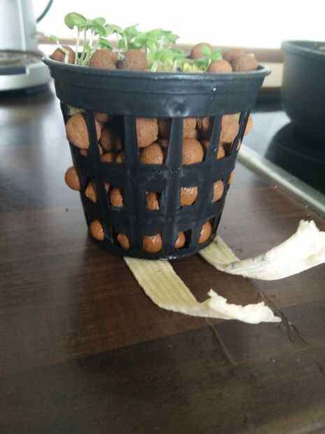 3. llenar 2/3 de la netpot con rocas hidropónicas. Asegúrese de que la mecha se encuentra directamente en medio de su netpot para garantizar un suministro de agua hasta