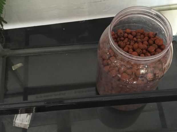 Tomar el HydroBalls o piedras o todo lo que tienes alrededor y poner sobre una capa de media pulgada en la parte inferior del tanque. Esto es darle a cualquier exceso de agua un lugar para ir, por lo que sus raíces de la planta no están sentado en el agua.