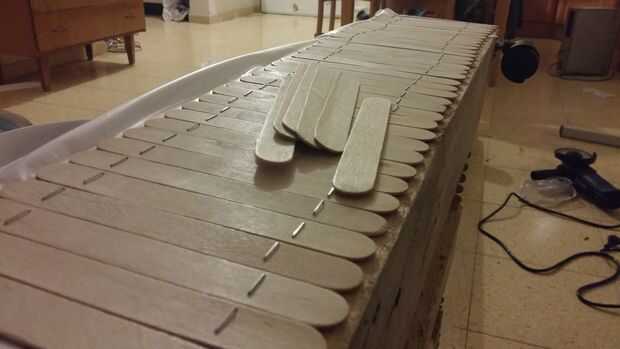 Uso icecreem palos y decoré el exterior del aerosol pintado el sorteo y sorteo de la pistola de grapas