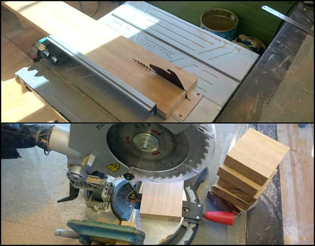 Comencé cortando al hilo mi roble ancho de 10 cm (4 pulgadas). Entonces yo cortar trozos de largo 10 cm en la sierra para cortar ingletes.