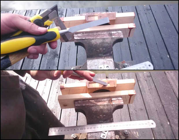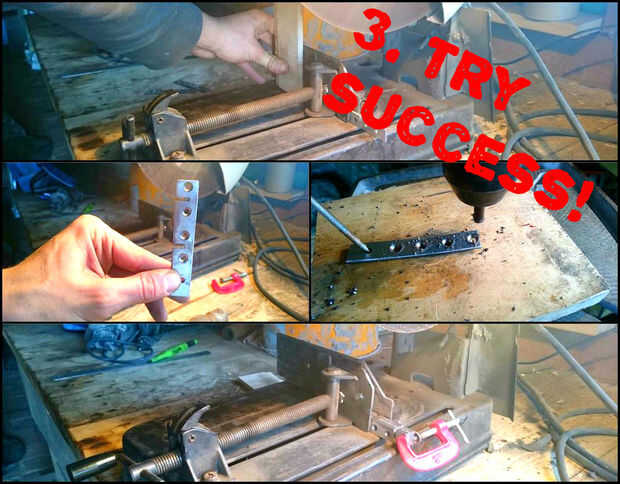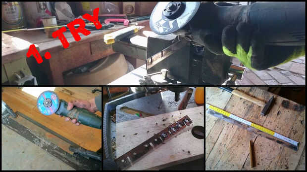 - Tomé stock metal grueso 2 mm y había cortado a la medida con amoladora angular, los orificios perforados y había avellanado en taladro y corte una muesca para el tornillo con amoladora angular. Esto fue un fracaso total. A mano alzada fue no una opción.