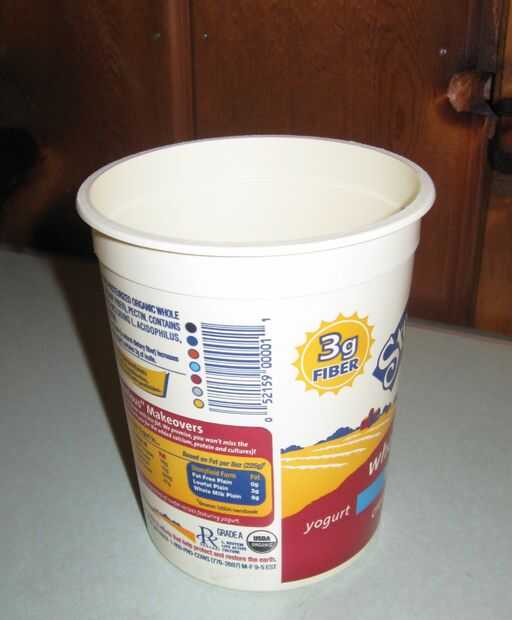 tomar su reutilización creativa más allá de la sala de juego y en el jardín con este rápido y fácil colgar caja jardinera.Hemos utilizado envases de yogur, alguna cinta de embalaje y piezas de Makedo de mymakedo.com.Paso 1: encontrar Fuente de envase