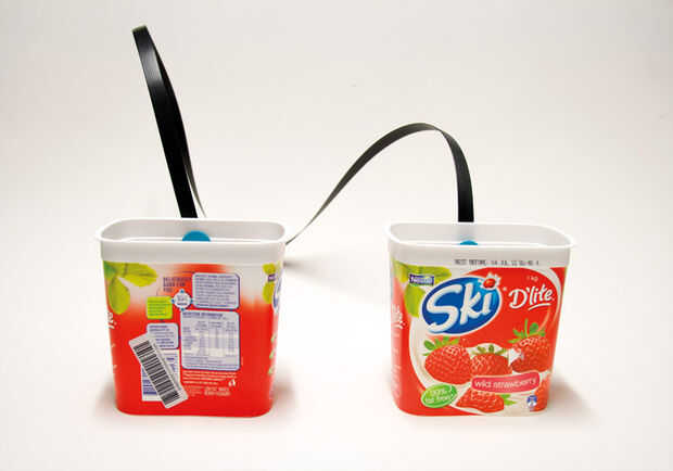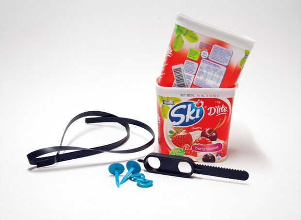 Hemos utilizado envases de yogur, alguna cinta de embalaje y piezas de Makedo de mymakedo.com.