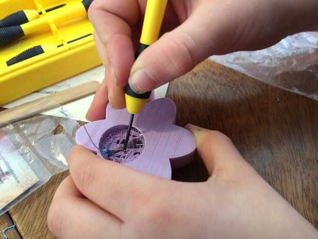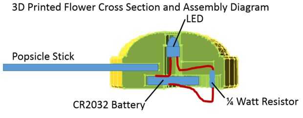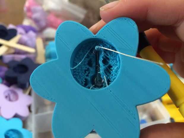 He intentado imprimir que las flores con soportes pero los soportes eran difíciles de eliminar. En su lugar sólo imprimí les sin soportes tal que las LED y batería eran bastante desordenadas debido a tender un puente sobre el plástico. Esto está bien ya que se cubrirá de todos modos. Con la ayuda de mis hijos, utilizamos pequeños destornilladores para raspar hacia fuera las piezas adicionales de plástico sobran.