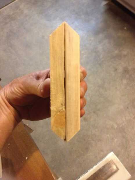 Ajuste la hoja a un ángulo de 45° y ajustar la guía para que la pieza final es 6" de largo. Pasar el tablero de la hoja, luego voltear la pieza cortada y pasarlo a través de otra vez para cortar un ángulo de 45° en el otro extremo. Necesitará dos de estos.