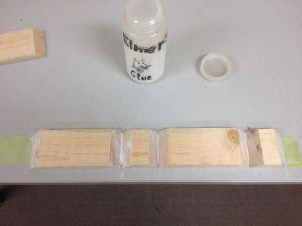 Aplique una capa delgada de pegamento en el interior de todo el inglete corta entonces "doblar" los lados en una caja. Debe haber suficiente cinta para cerrar el cuadro de la izquierda. Limpie el exceso de pegamento y fijar la caja sobre una superficie antiadherente como una pieza de plástico pesado.