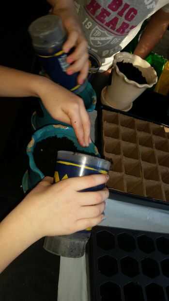 2. luego colocar los palillos en las macetas y semillas en las filas etiquetadas.