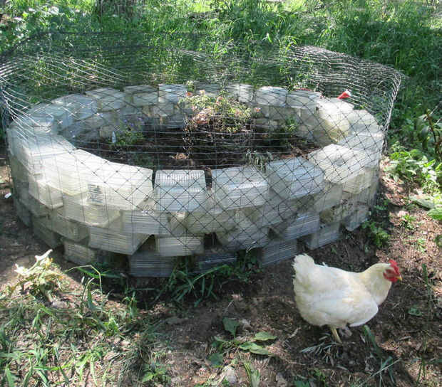 De reciclaje dañada bloques de vidrio para crear un abono jardín de ojo de la cerradura es la última estructura en mi granja de Permacultura.