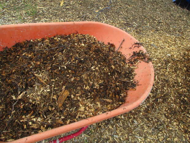 Vuelca 3 carretilla-fulls en el jardín. Afortunadamente el pajote fue un poco más cercano de mi sitio. : )