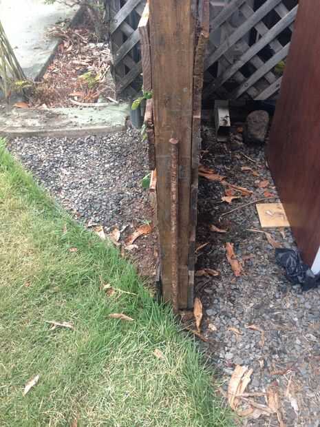 En este ejemplo, una participación formación asegura un extremo de la plataforma mientras que el otro extremo se une a una cerca existente.