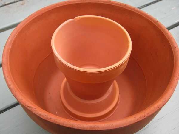 Verifique que el borde superior de la maceta del embalse se pega por encima del borde superior de la maceta más grande. Esto asegura que tu olla tanque puede ser llenado con agua sin desbordar en el suelo. (Es una buena idea intentar esta "prueba de ajuste" con los contenedores cuando usted está eligiendo cual usar para su proyecto).