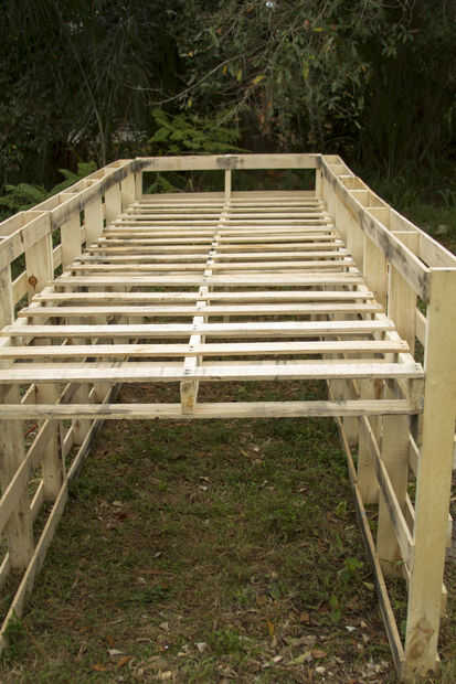 En este momento puede poner una plataforma de tapa final en él o mantener la longitud del edificio. Construir mi cama así el interior área de crecimiento sería 12'x 4'.
