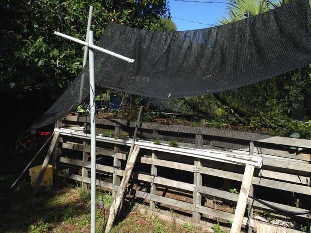 Lo último añadido a él es el paño de la cortina por lo que yo puedo crecer mis verduras aquí en Florida en el verano, así como un sistema de rociadores de agua en los meses más secos del invierno.