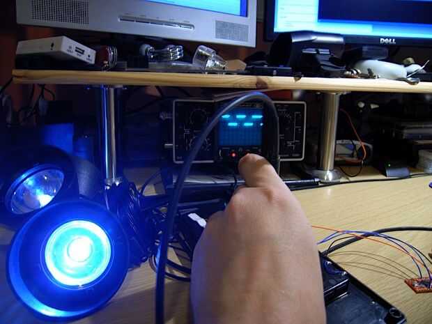 Por eso usé el pin 3 - pin PWM. ;) Se puede ver en el ' alcance los pulsos. Muestra sobre una proporción de espacio de marca de 50: 50, por lo que la luz es en el brillo del 50%. Tarda unos dos segundos para pasar de completamente a completamente por. Creo que le queda cool.