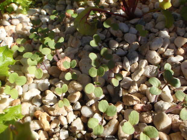 También me he echado unas semillas en la grava que han todo germina y tiene la ventaja de las aves no quieren desenterrar las plantas nuevas, supongo que no les gusta la grava.