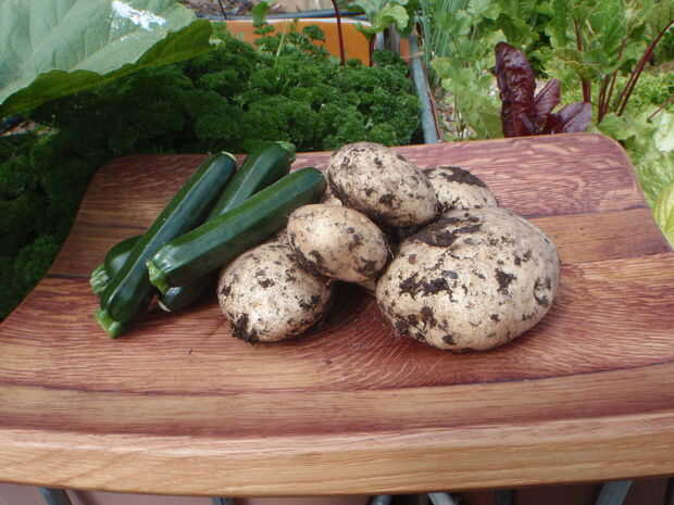 en la última semana 3 o así la s de calabacín han realmente comenzó a producir y nos tienen siempre segunda noche, más o menos y ya comenzamos regalando exceso. Tenía cierto éxito con patatas pero algunas de las plantas fueron atacados por slaters que fue una decepción, tengo que ser un poco más cuidadoso con el pajote de introducción de plagas
