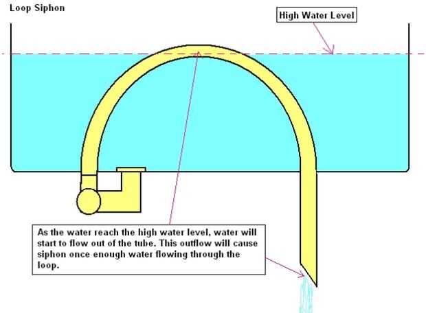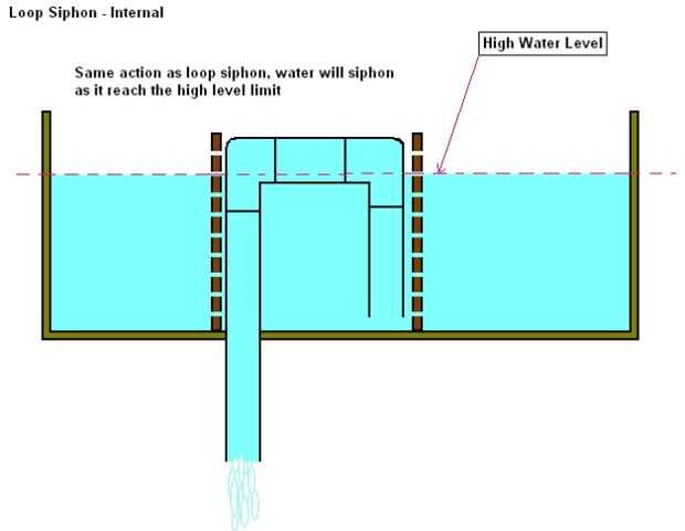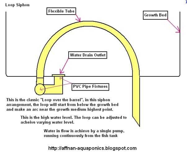 La parte más difícil es establecer el sistema de sifón. Estas bombas poco no tienen el flujo para funcionar los aspersores a la vez, y eso no sería bueno que las plantas se ahogan. Un sifón le da a la planta una bebida sobre cada media hora durante 2 o 3 minutos a pleno sol, menos encendidos días nublados y nada en la noche o días lluviosos. Tenía la esperanza de encontrar algunos GIFs buena para explicar, lamentablemente eso es lo mejor que pude encontrar. El sifón se utiliza comúnmente en sistemas de aquapnoic y hay un montón de info en youtube y otros sitios Web. El GIF es un sifón de campana y es básicamente el mismo para todos los sifones, he utilizado los sifones de 2 lazo se muestra en el diagrama, el sifón interno dentro del tanque superior, y el lazo normal en la grava crecer cama. Pueden ser difíciles de configurar pero una vez trabajando que no requieren mantenimiento y son muy fiables. Aquí están algunos consejos.