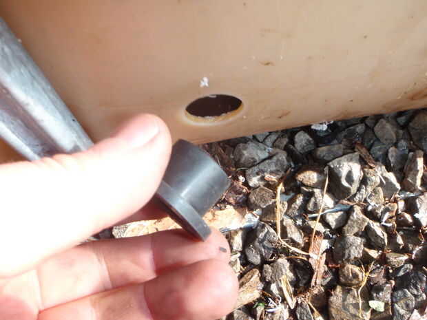 Para unir los tanques usé estos goma que obtuve de un proveedor de riego, el trabajo bien y no, simplemente perfore un orificio de escape y empuje la arandela y luego la conexión.
