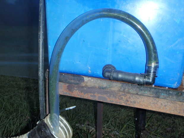 Aquí le damos un par de fotos de los sifones, el interior del tanque superior es difícil de fotografía pero el elástico se muestra en la parte superior del tubo. Los "aspersores" son sólo 2, 5 mm los orificios perforados en el tubo que son fáciles de mantener limpio y muy barato.