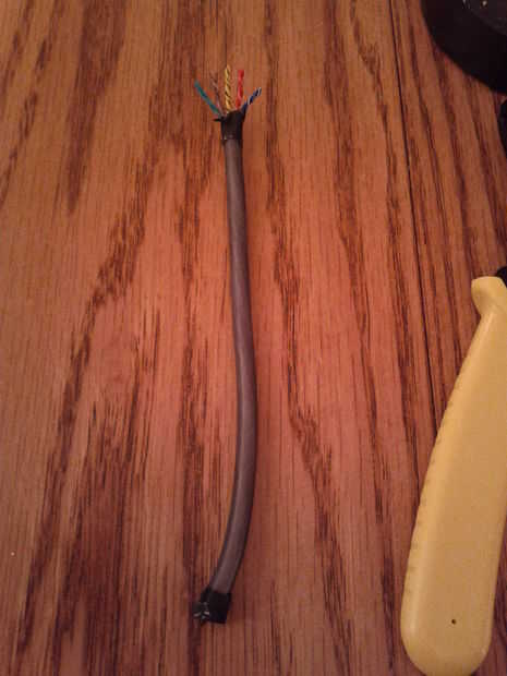 Una vez que tenga una longitud de cable lo suficientemente largo para el rastrillo (mantenerlo debajo de 10 cm o de 4" Si quieres para que quepa en el compartimiento), tira de un extremo y doblar los extremos del cable interiores individuales para crear su rastrillo. Enrollé los cables de colores como para hacer 5 puntos en el rastrillo.