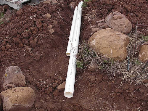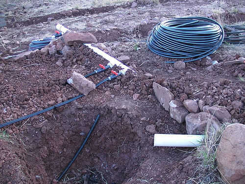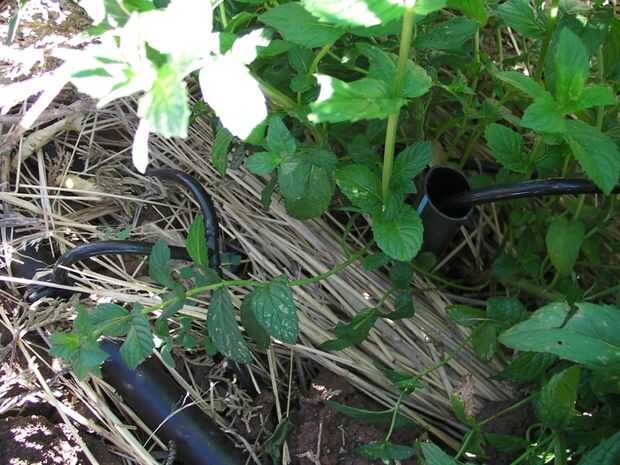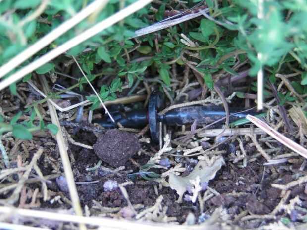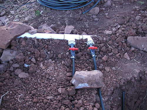 - Cubren las líneas de riego principal con suciedad y los emisores y líneas de 1/8" con acolchado. También debería pintar el PVC que se expondrá, como el sol puede dañar PVC.
