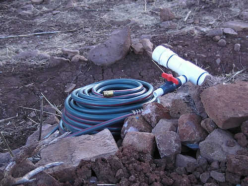 - Una de las mangueras de 3/4" será profunda regar árboles y arbustos. En cada árbol o arbusto puntos, coloque un tubo de 3/4" en el orificio cuando echeis un vistazo a plantar. Perforaciones a todo lo largo de su longitud. El tubo debe quedar para arriba sobre la tierra unas pulgadas. Entonces puede poner su árbol en el agujero y rellenar el agujero con tierra. Entonces, hacer un agujero de 3/4" manguera de riego (un clavo debe hacer el truco). Introducir en un 1/8" emisor de la válvula en el orificio. Conecte una manguera de 1/8" a la válvula y ponga el otro extremo de este tubo en la tubería de 3/4" que se está pegando fuera de la tierra. Puede encender y apagar esta válvula, así como ajustar su flujo por tenerlo en algún lugar en el medio.
