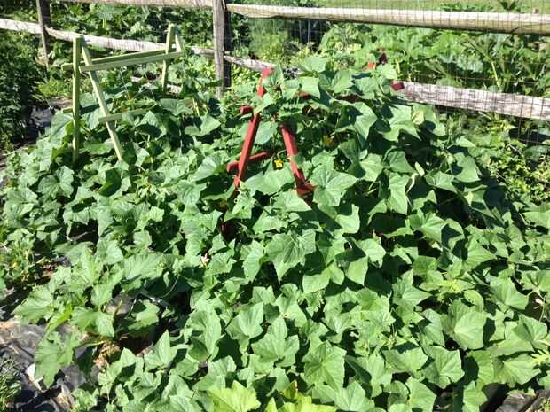 Instalación de guía de escalada pepinos en invernadero (en el extremo de la pared del invernadero). Paneles de rejilla:1. hecho con pollo rejilla o alambre del acoplamiento de material (es la mejor manera para el cultivo de pepinos escaladas).Paso 1: