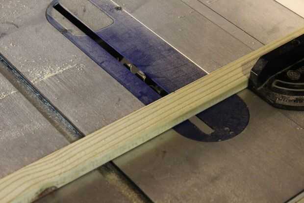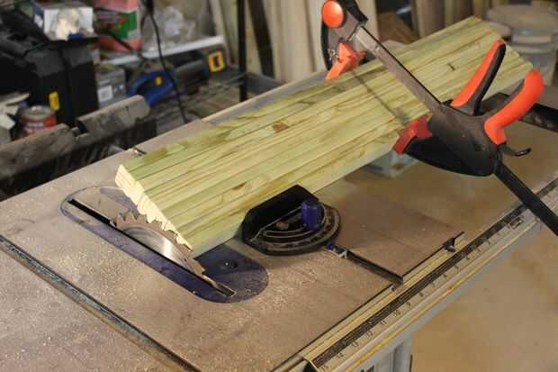 Sujeta los 8 listones juntos y me funcionó que el grupo en la tabla VI para igualar los bordes. Las ranuras de la cadena hicieron bajar la hoja a 1/8" sobre la mesa.