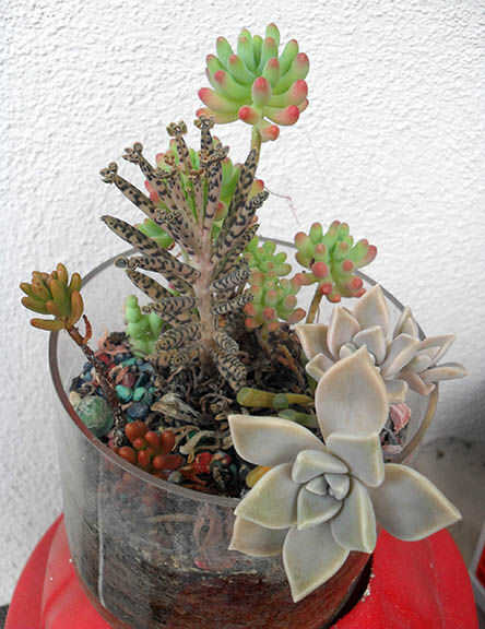 Plantas pequeñas de su elección --recomiendo suculentas para este proyecto si soporta el clima.