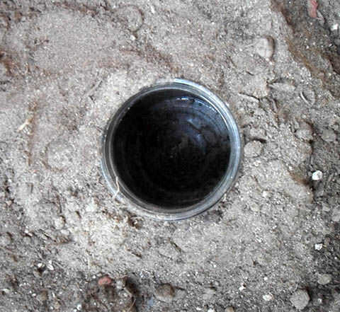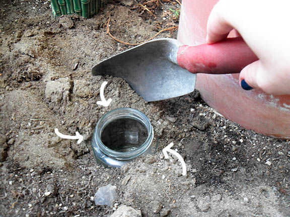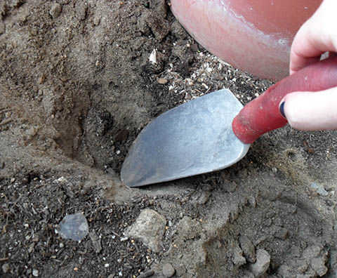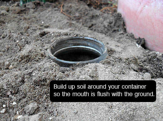 Usando una paleta, cavar un agujero en la tierra aproximadamente a la altura de su contenedor. Mueva hacia abajo en allí para un ajuste de nivel.
