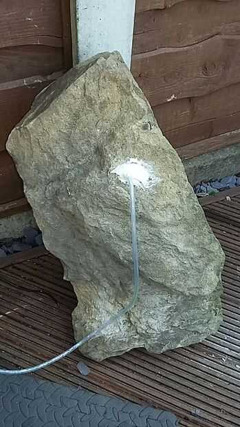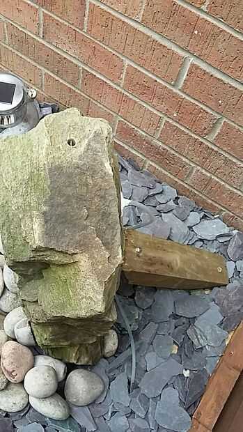 Mide aproximadamente 300mm (12 pulgadas) cuadrado en la base, está alrededor de 600mm (24") y debe pesar al menos 60kg (130lb). Es también una piedra de arenisca local y tiene un razonablemente plana base así que levanta muy bien.