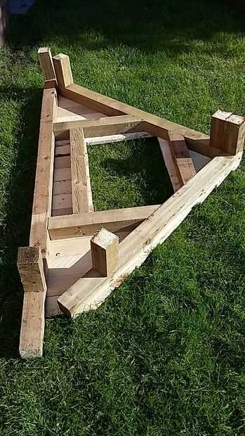 Usé los postes de la cerca para crear un marco básico, como puede verse en la primera foto. Después cubrí la parte superior de las tablas de la plataforma creando un marco mucho más pesado que supongo que realmente se necesita. También usé un poste de la cerca para actuar como un ancla entre el orificio previamente taladrado en la piedra y el marco.