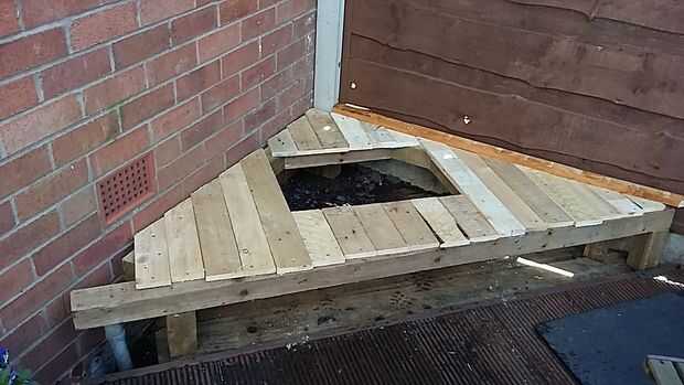 Como puede verse en la primera foto las piernas más bajas no están en los extremos del marco. Esto es debido a un drenaje que en este momento y quería mantener el fácil acceso a esto debo necesitarlo.
