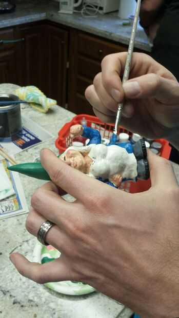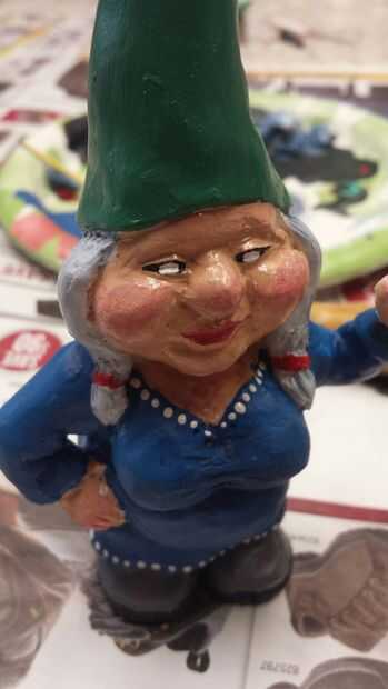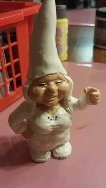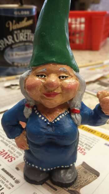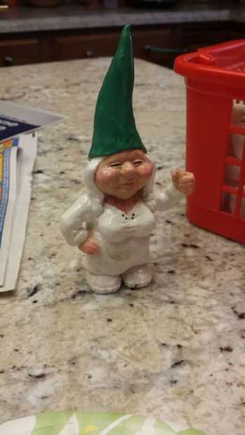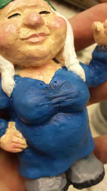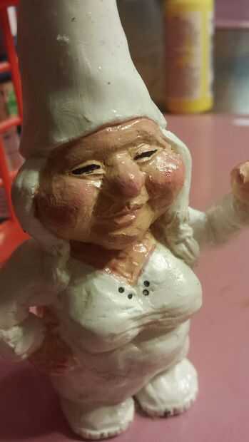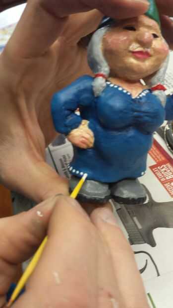 Una vez seco el uretano puede iniciar la pintura. He seleccionado un esquema de color neutro (común para gnomos de jardín). Una vez que se agregaron los colores base que era capaz de hacer algunos detalles. Para las mejillas, utilicé un color rosa claro para traer a la vida.