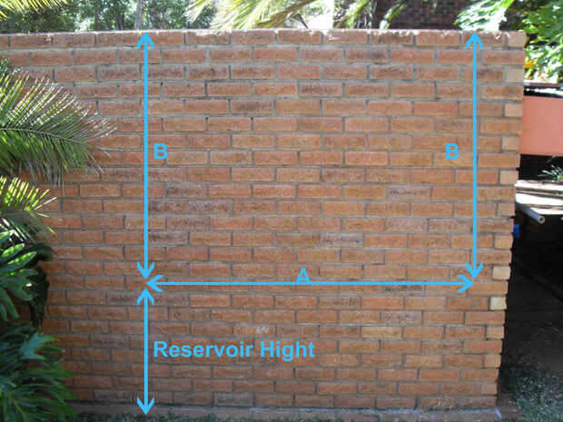 Ahora toma la altura de su depósito (depósito + 20cm) y restar de la altura de la pared. Como antes de escribir esta longitud a B en su pedazo de papel. Por ejemplo. B 1.8m