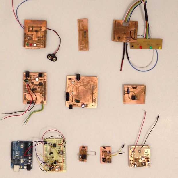 Muchos tableros de circuito.! Gracias a la Othermill que era capaz de recorrer rápidamente múltiples diseños, radicalmente cambiando componentes de junta y disposición de PCB en el camino.