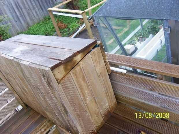 Construir algún tipo de cubierta de la caja y la tapa para aislar los bidones de la luz solar (algas amor solución nutritiva también!) (fig.29) ver tapa en fig.06