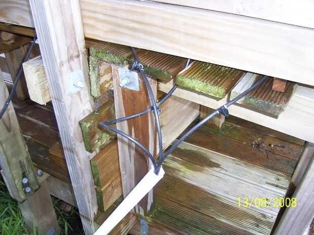 Corte dos bloques de madera para apoyar el bidón alto suficiente para que el tubo de salida de la base no es aplastado y puede naturalmente curva hasta el tubo de la bandeja. Si no tienes el espacio para esto puede utilizar codos de 4mm. etc.