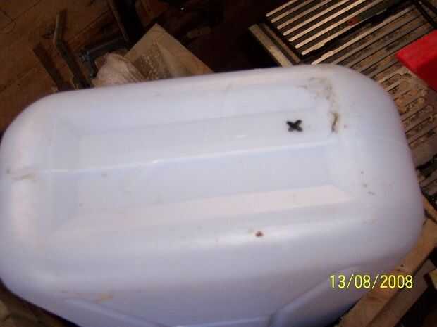 Fijar el plástico bidón (fig. 03) arriba a los lados firmemente y taladre el agujero correcto para el tubo de nutrientes (fig. 04) (tubo de 4mm en mi caso) ojal