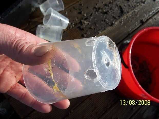 Coloque un pedazo de madera dentro de la taza para soportar el plástico para evitar que se agrieta y seguro en vicio.