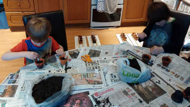 Maceteros baratos para empezar las plantas del jardín o jardín interior.