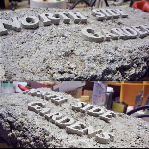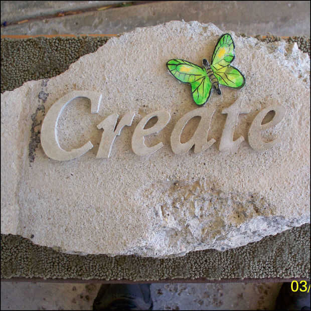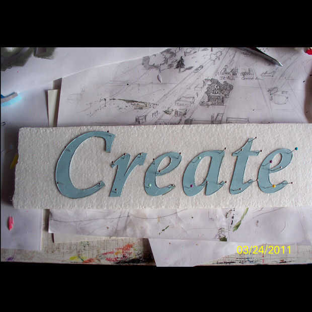 , corté las cartas de láminas de espuma de poliestireno.  Tenga cuidado de dejar una buena forma y no cortar la espuma de manera que no puede ser utilizado en una sola pieza.  Los centros de "o", "p", "b", etc., tienen que necesariamente ser recortado, pero guardado y utilizado en el proceso de fundición.