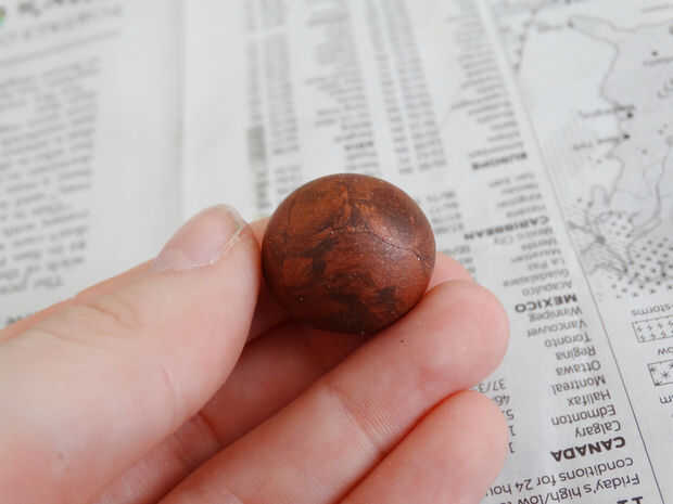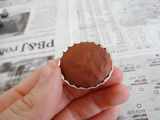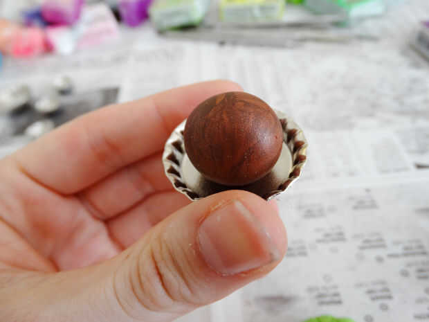 -rodillo pequeño pedazo de marrón en forma de bola -prensa bola en la tapa de la botella aplanar algunas -tomar la tierra de la tapa de la botella con la herramienta -para comenzar el lo (jajaja) paisajismo