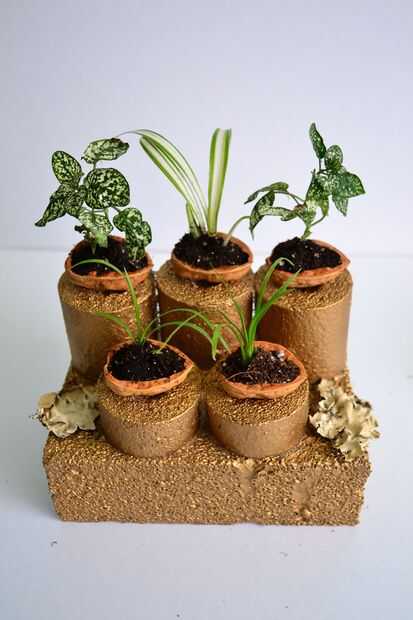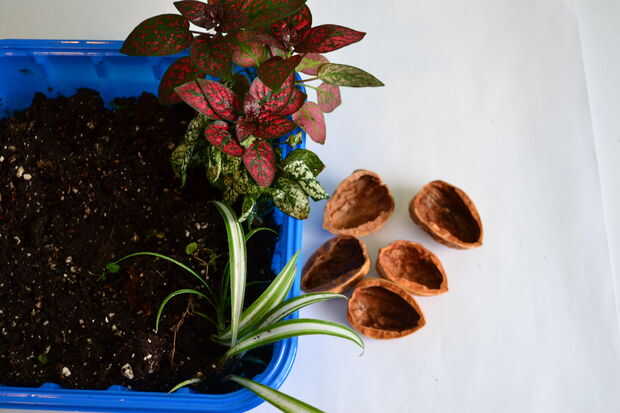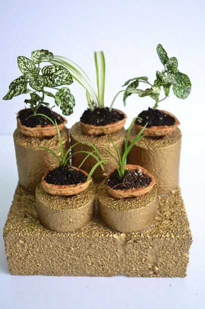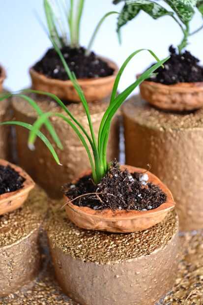 Con sus plantas favoritas miniatura, planta cada uno en un nogal medio.